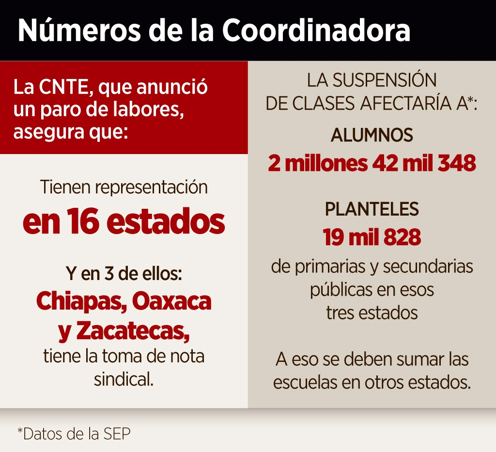 «No estamos de acuerdo, es una burla la respuesta que nos dan y, por lo tanto, damos un emplazamiento a que se siente en lo inmediato a atender a la Coordinadora con el respeto que merecemos todos los trabajadores del Estado», indicó, por su parte, Eva Hinojosa, dirigente en Michoacán.