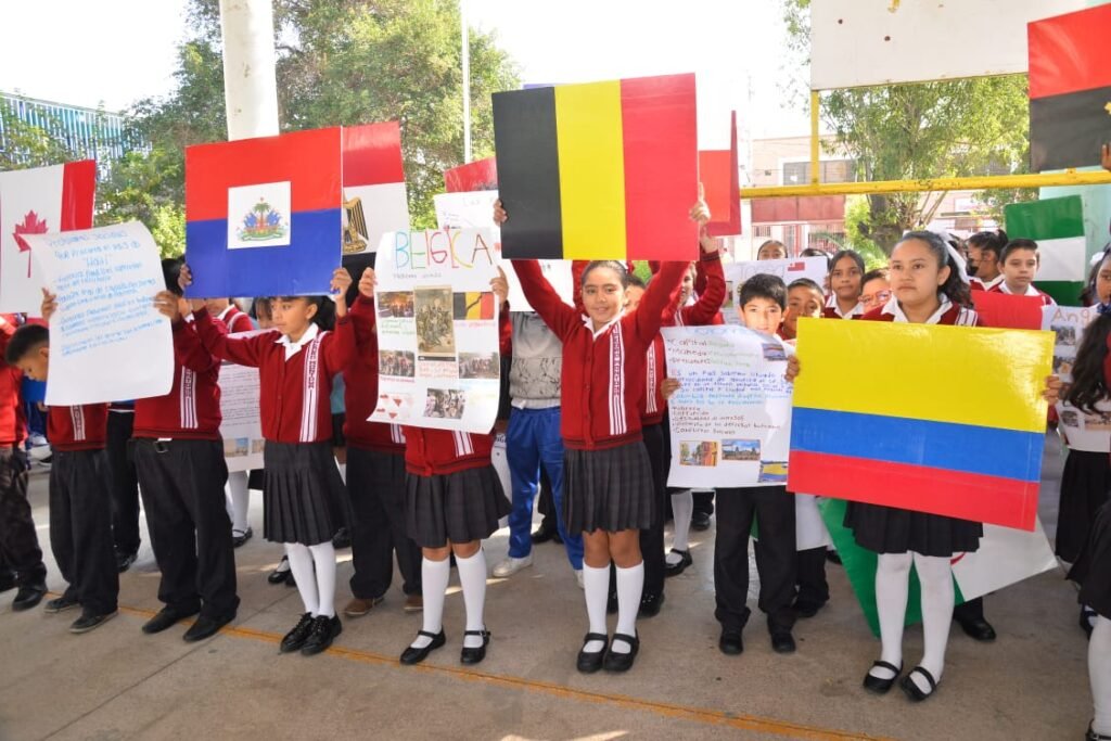 - En la primaria “Pedro Montoya”, la ceremonia incluyó la exhibición de las banderas de los países miembros de la ONU, y recordó a estudiantes la relevancia de construir y abonar a la paz en el mundo.