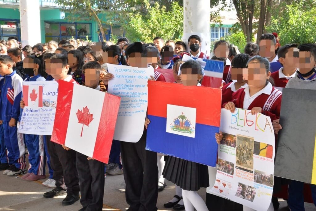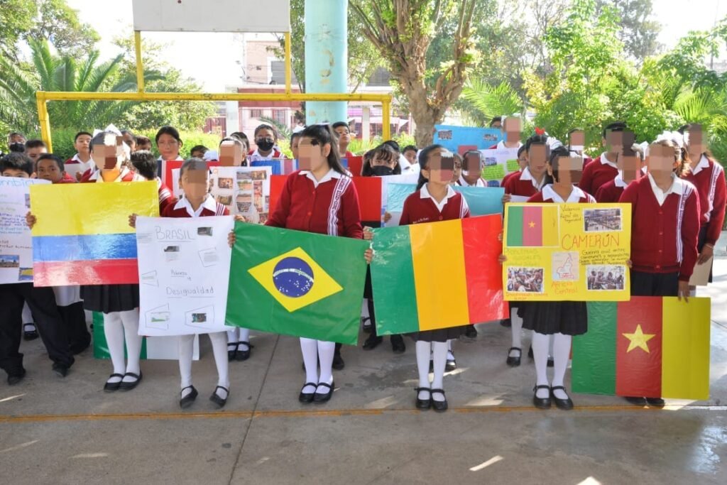 Durante el evento, las y los estudiantes pudieron apreciar una muestra de las banderas que representan a los países miembros de la ONU, simbolizando la diversidad y la unión entre naciones, asimismo, alumnos y alumnas de diversos grados participaron con declamaciones tras el acto cívico.