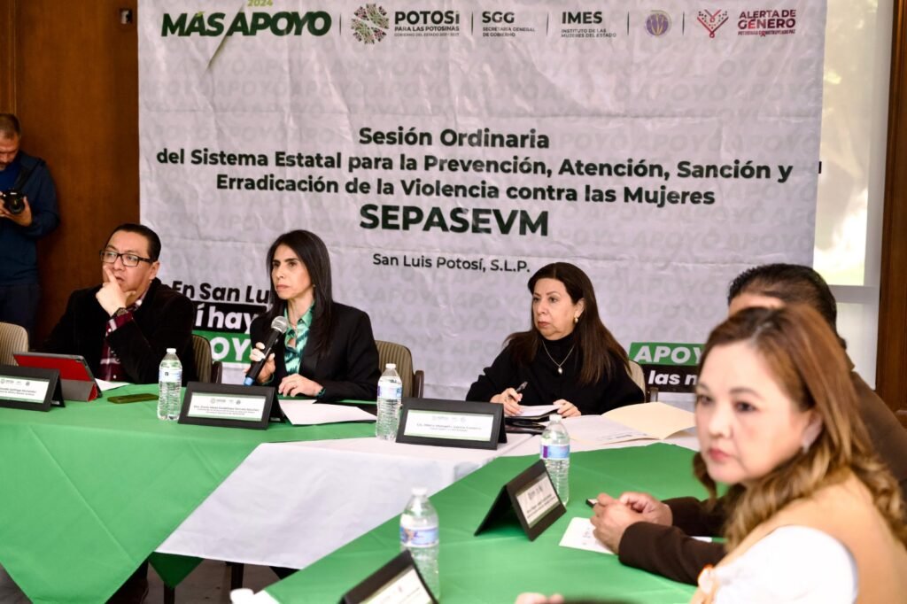 Este jueves, la Fiscal General del Estado, María Manuela García Cázares, asistió a la Segunda Sesión Ordinaria del Sistema Estatal para la Prevención, Atención, Sanción y Erradicación de la Violencia contra las Mujeres (SEPASEVM). La reunión fue encabezada por Gloria Serrato Sánchez, titular del Instituto de las Mujeres del Estado de San Luis Potosí.