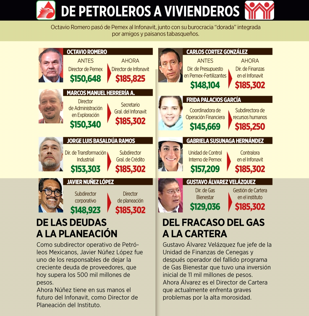 El Infonavit creció con Octavio Romero Oropeza en personal de confianza y en la primera línea de mandos fueron contratados amigos y funcionarios que laboraron en el ex director de Pemex en el gobierno de AMLO.