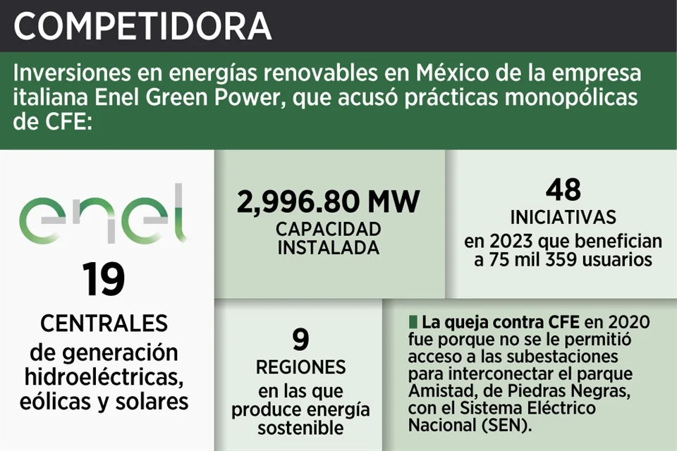 El 5 junio de 2020, casi cuatro meses antes del inicio de la investigación de la Cofece, Enel Green denunció a CFE Generación IV ante la Comisión Reguladora de Energía (CRE), precisamente por no permitirle acceso a subestaciones, necesario para interconectar elparque eólico con el Sistema Eléctrico.