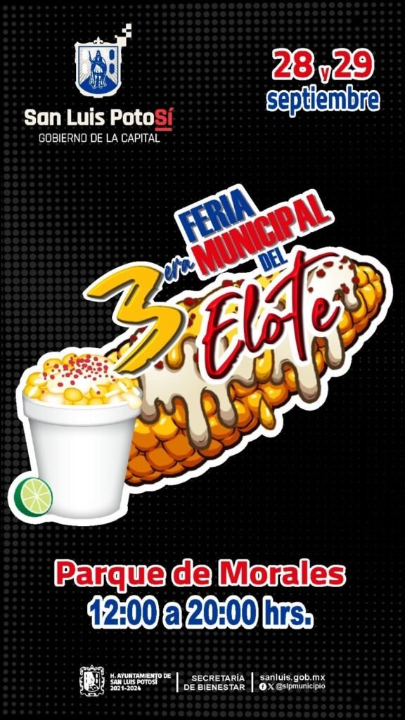 En el marco del Día del Maíz que se celebra en México cada 29 de septiembre, el Gobierno municipal de San Luis Capital, a través de la Secretaría de Bienestar, por tercera vez abre las puertas a la “Feria del Elote” que se realizará los días 28 y 29 de este mes, en el andador principal del parque de Morales.
