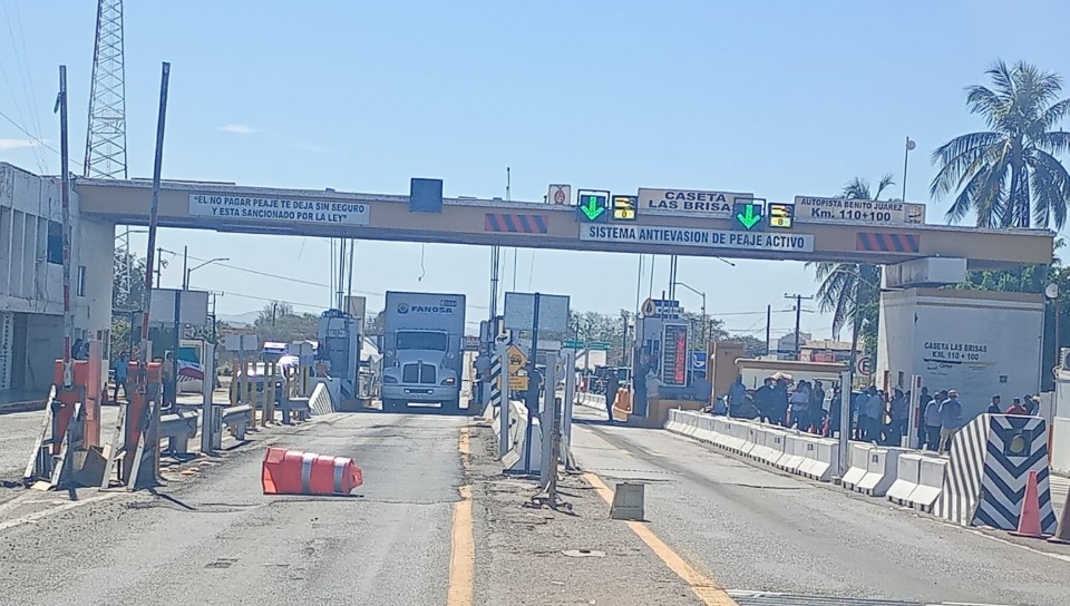En la Autopista Lic. Benito Juárez, a la altura del Municipio de Angostura, se encuentran otros manifestantes en la caseta de cobro «Las Brisas».