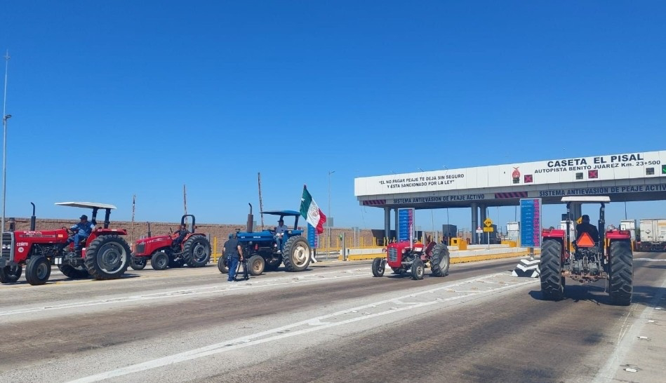 Y en la Carretera Mazatlán-Culiacán, a la altura de la caseta de cobro «Costa Rica», se registra otra manifestación más de agricultores.